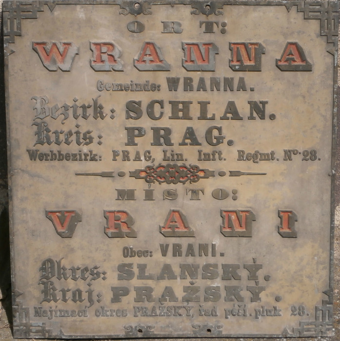 Dále je uvedeno foto historické tabule k označení obecního úřadu. Text uvádí vedle příslušnosti k politickému okresu a kraji i verbovací okres, kam příslušeli mužští obyvatelé obce. Podle sdělení pracovníků Vojenského historického ústavu Praha ji lze podle paralelního užívání krajů a okresů datovat do rozmezí let 1850-1862.