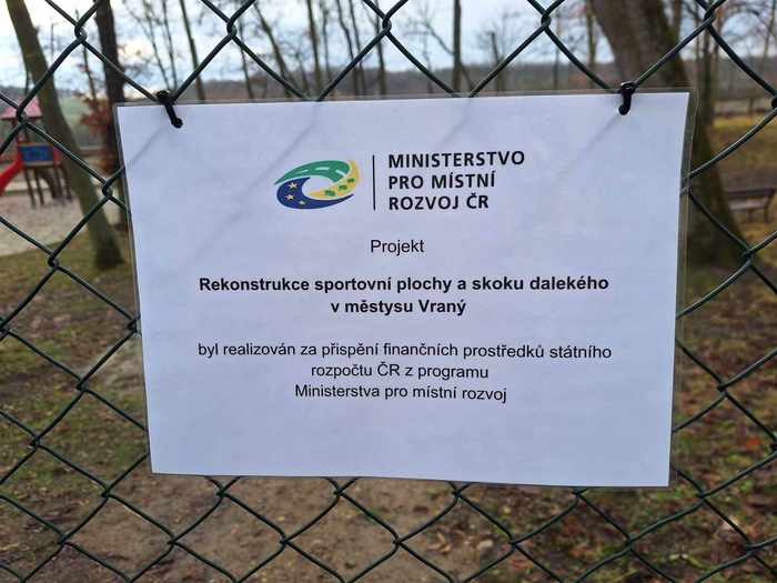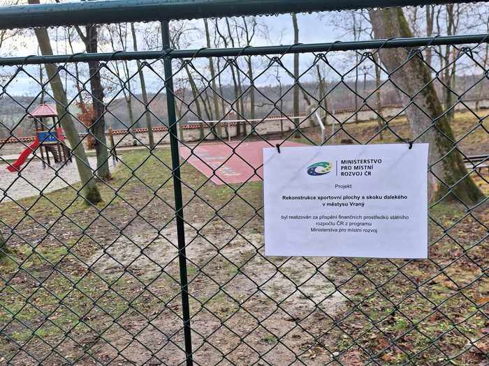 Úvod > Městys Vraný > Probíhající projekty - publicita > Rekonstrukce sportovní plochy a skoku dalekého v městysi Vraný - publicita